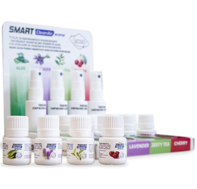 Aroma with active silver for application in air purifiers and humidifiers, as an additive to water and air conditioner cleaning products. The silver present in the product ensures elimination of pathogens found in the water in the tank and additionally protects against their development, improving the quality of air coming out from the device.