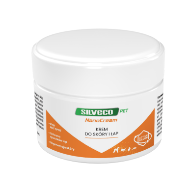 SILVECO PET Cream to kremowy preparat posiadający w swym składzie aktywne formy srebra, przeznaczony do stosowania na skórę zwierząt.