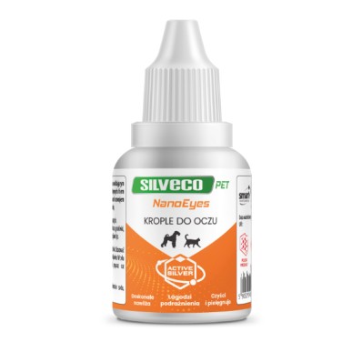 Pielęgnacyjne krople do oczu o działaniu nawilżającym i łagodzącym podrażnienia u psów i kotów zawierający aktywne formy srebra.