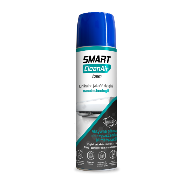 SMART CleanAir Foam to preparat w formie aktywnej piany przeznaczony do czyszczenia wewnętrznych i zewnętrznych jednostek systemów HVAC, który skutecznie usuwa najbardziej oporne zabrudzenia – brud, kurz, osady oraz zanieczyszczenia ropopochodne i tłuszcze. Zapach Citrus